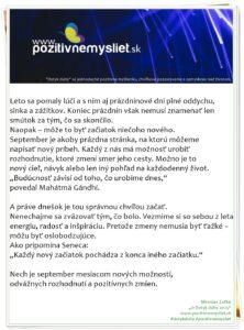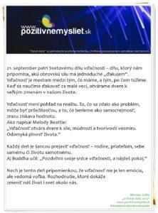 Od roku 2014 každý týždeň prinášam „Dotyk dúhy“. Ide o jednoduché pozitívne myšlienky, chvíľkové pozastavenie a zamyslenia sa nad životom.